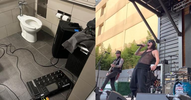 O show do L.A. Guns em Plano, Texas, Estados Unidos, realizado na última quinta-feira (23), não contou com Tracii Guns no palco. O guitarrista tocou direto do banheiro do camarim do local.