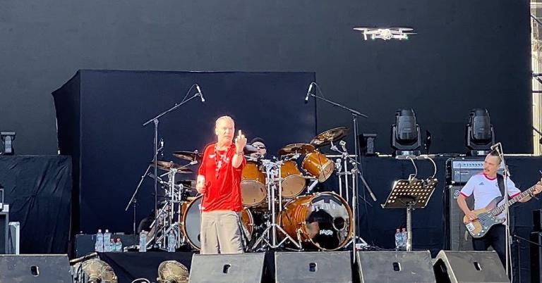 Porém, um drone se aproximou demais do palco, o que causou certo desconforto e, ao mesmo tempo, gerou uma situação descontraída. O frontman fez gestos obscenos, depois pediu a aproximação do objeto e tentou desferir algumas microfonadas nele.