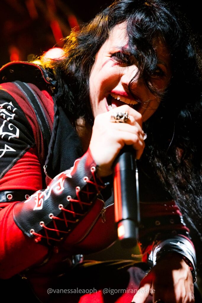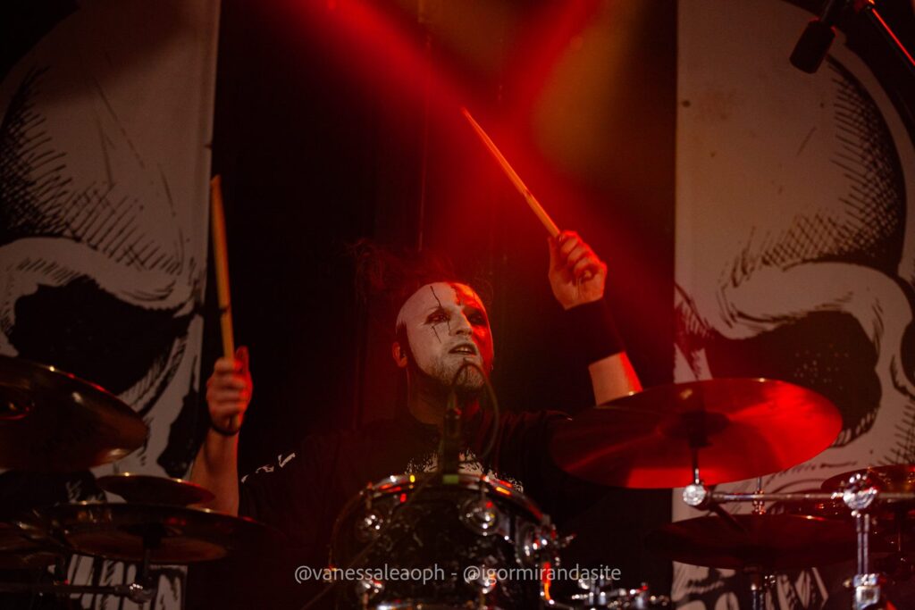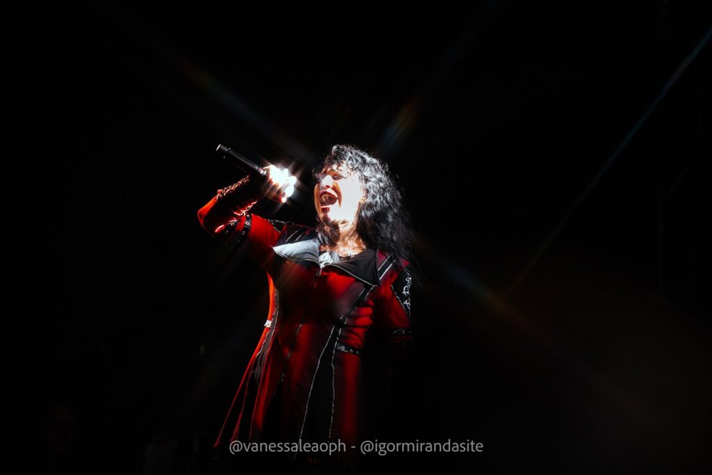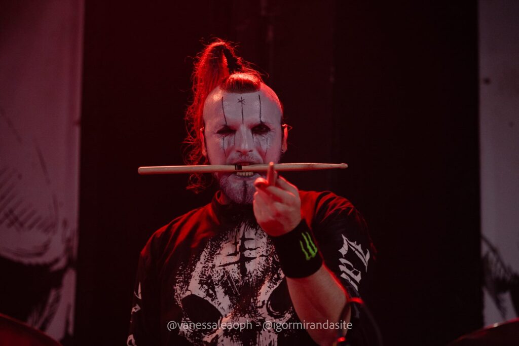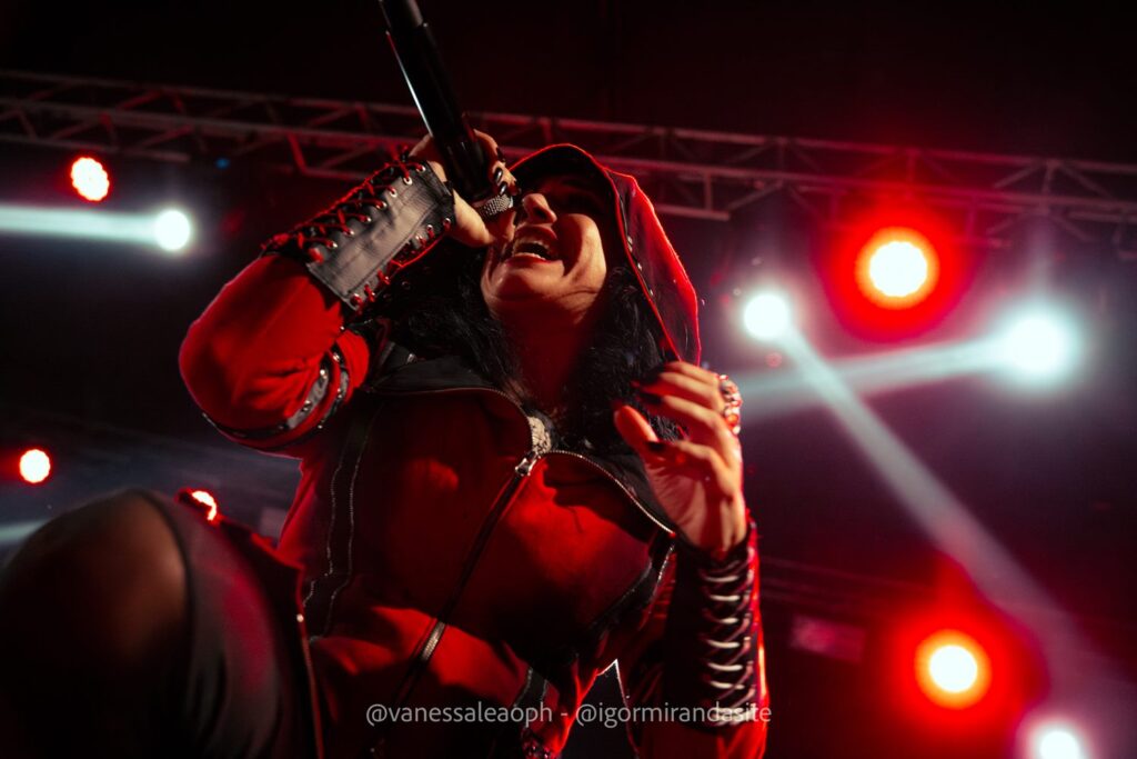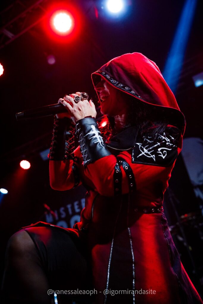 Olhando para o palco, via-se um total de zero decorações. A aposta ocorria exclusivamente na força das músicas — no máximo apoiando-se também em maquiagem e figurino típicos. Primeira tocada do mais novo trabalho, recém-disponibilizado em 14 de fevereiro, “Hosting the Shadow” caiu super bem. No total seriam seis novas e, se no disco “Sleepless Empire” há a participação especial de Randy Blythe, ao vivo Andrea assumiu maior protagonismo, competentemente emulando as linhas do frontman do Lamb of God.