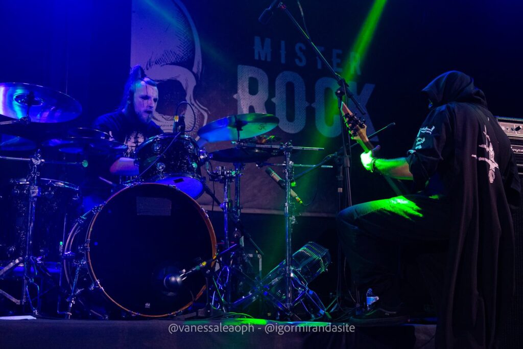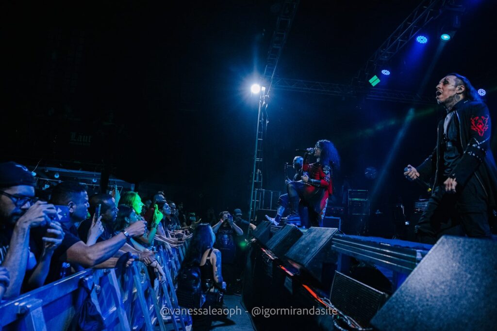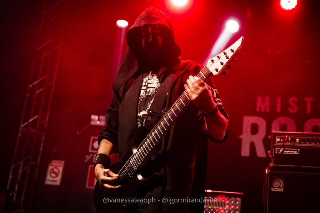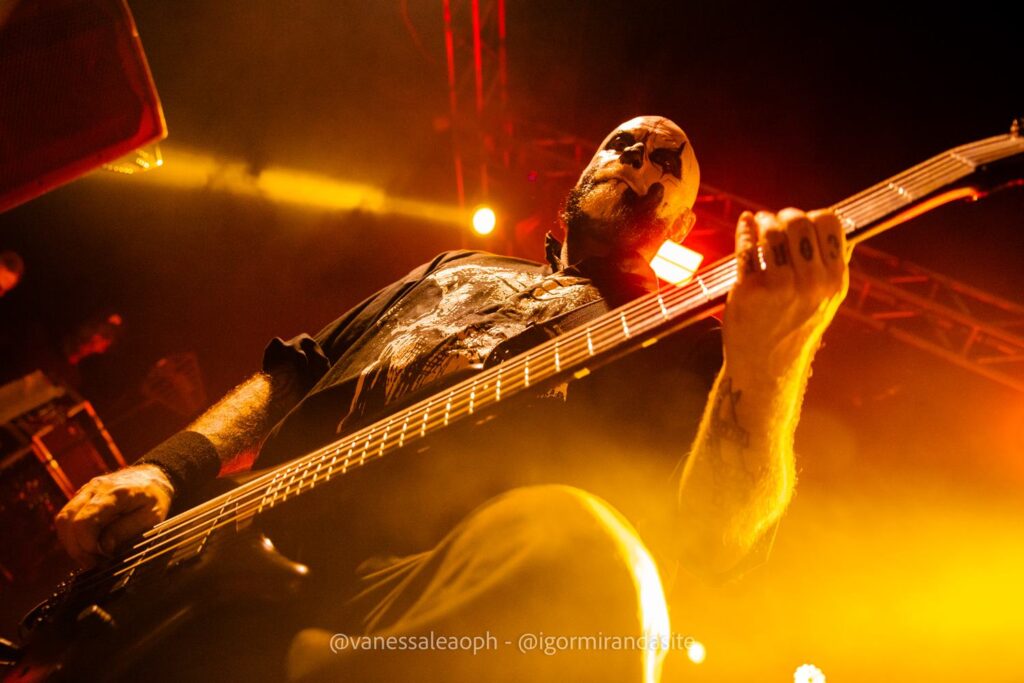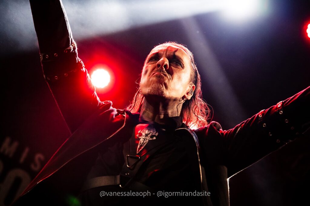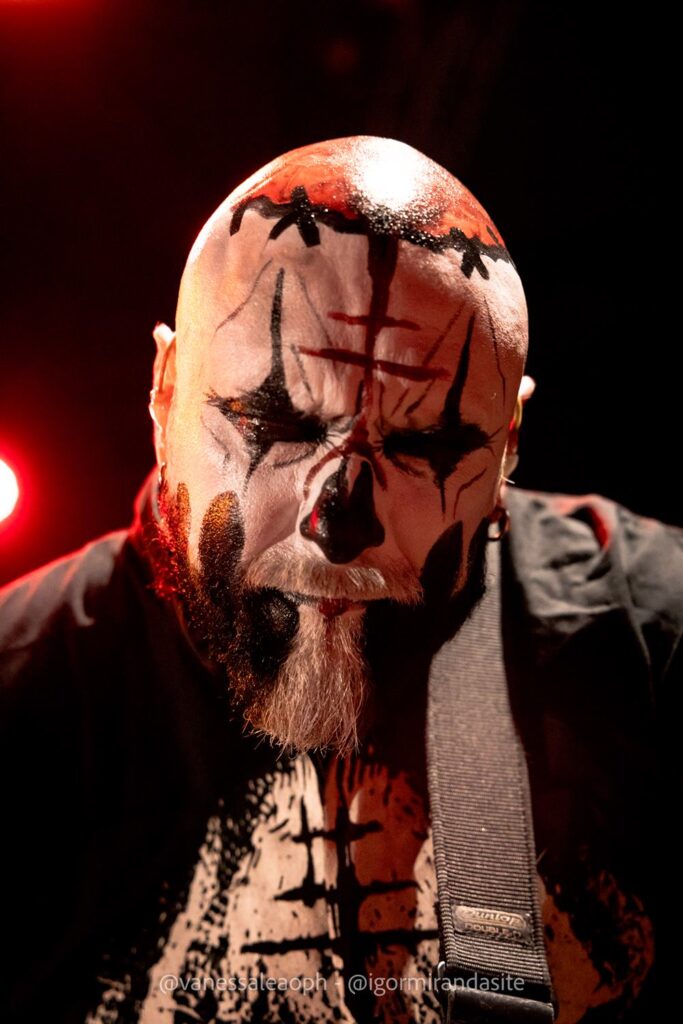 Olhando para o palco, via-se um total de zero decorações. A aposta ocorria exclusivamente na força das músicas — no máximo apoiando-se também em maquiagem e figurino típicos. Primeira tocada do mais novo trabalho, recém-disponibilizado em 14 de fevereiro, “Hosting the Shadow” caiu super bem. No total seriam seis novas e, se no disco “Sleepless Empire” há a participação especial de Randy Blythe, ao vivo Andrea assumiu maior protagonismo, competentemente emulando as linhas do frontman do Lamb of God.