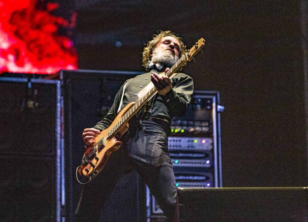 Carey, ao contrário, deita e rola distribuindo as batidas — ou a falta delas, como bem deseja. Além dos timbres tradicionais, também tem em seu kit descomunal uma parte com sonoridade semelhante a bongôs e atabaques. Antes de interromper, ele dá pulsação ao clima ritualístico que essa combinação toma, tendo o estilo árabe de canto que Maynard adota como o ingrediente final no estilo único do Tool.