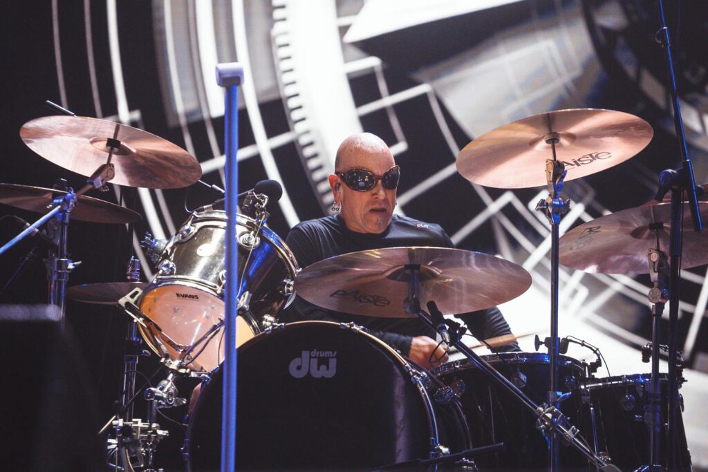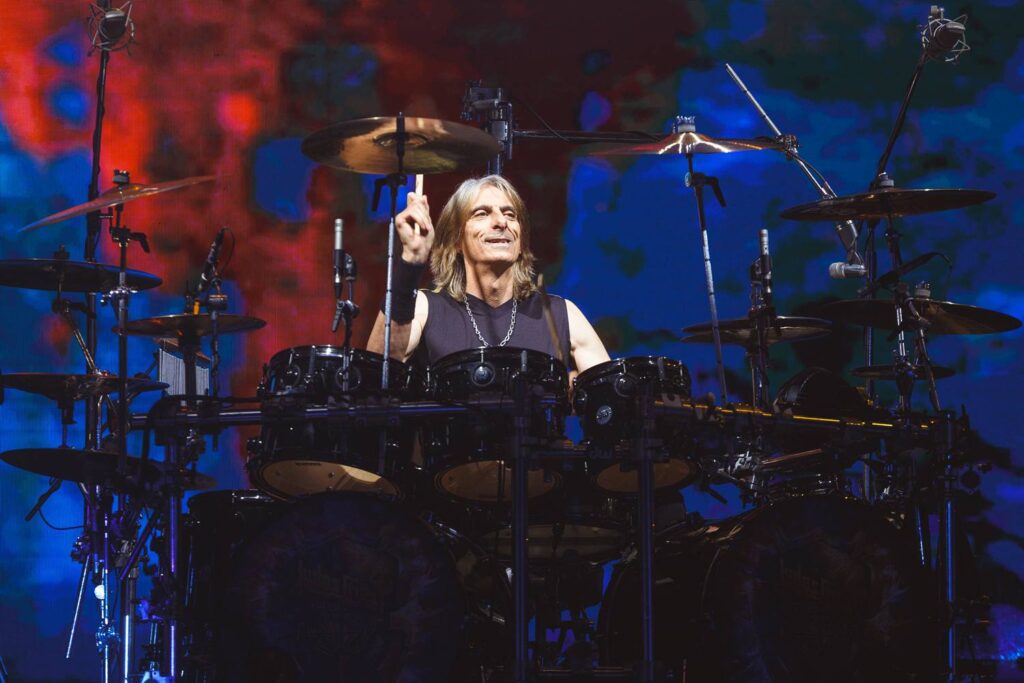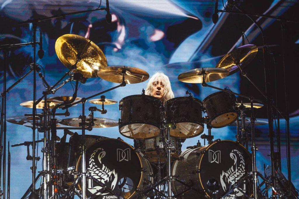 Logo de cara, chama a atenção o palco imponente, com diversos adereços, incluindo o símbolo da banda no teto. Em “Invincible Shield” (2024), faixa-título do último álbum de estúdio, ele “desce” num dos vários momentos grandiosos do show.