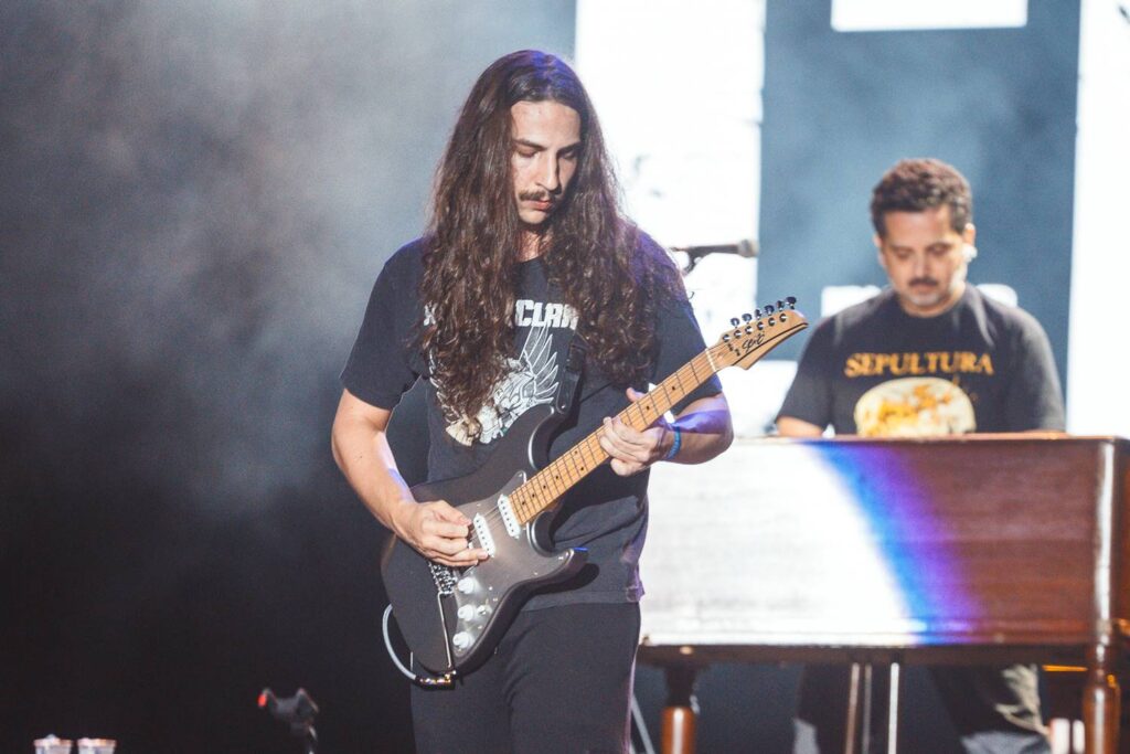 O trio contou com a companhia do Kisser Clan, de Andreas Kisser (Sepultura), que abriu os trabalhos na Arena BRB Mané Garrincha.
