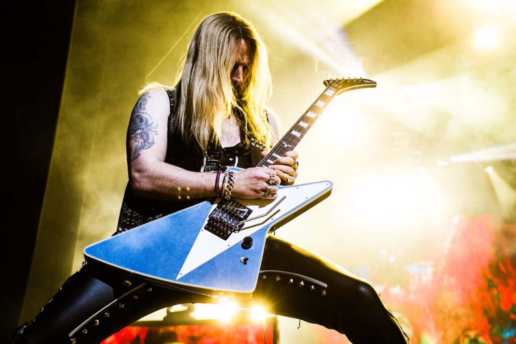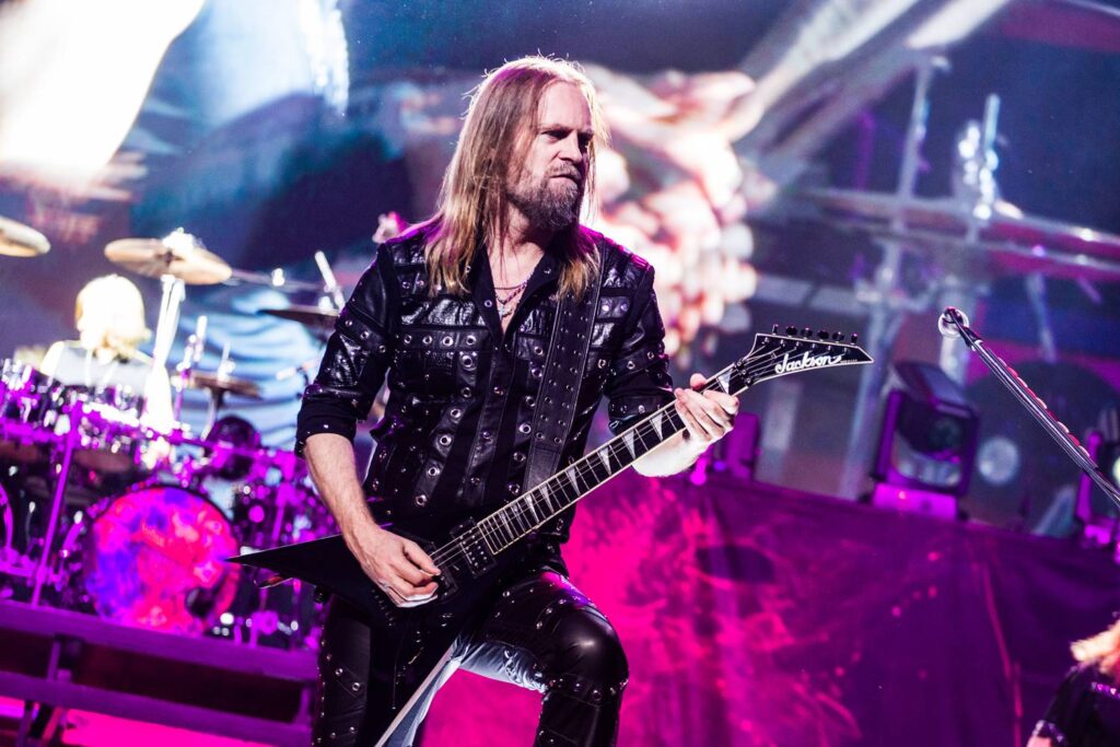 Não que tenha faltado alcance vocal, porém, como “Saints in Hell”, a cadenciada e épica faixa setentista, deixou claro. Depois dela, porém, a voz ficou um pouco mais baqueada. Uma certa rouquidão se fez presente na outra música nova, “Crown of Horns”, momento feito para o guitarrista Richie Faulkner brilhar na introdução.