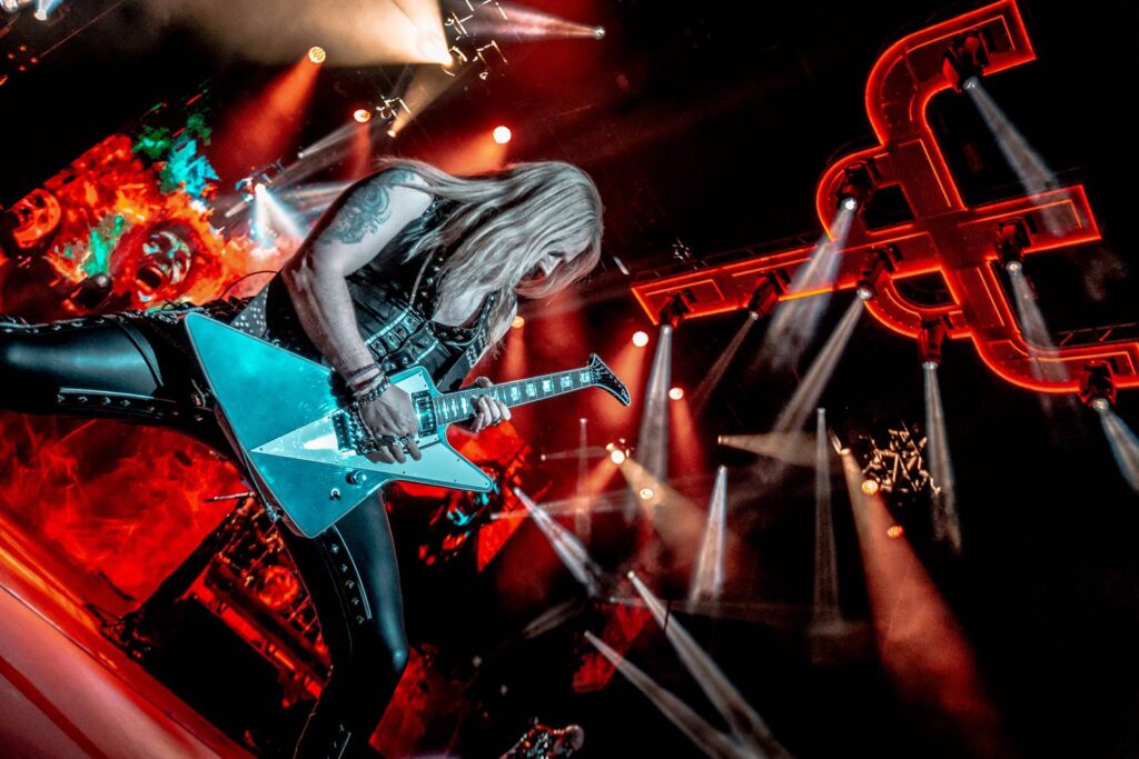 Outra diferença em relação ao show da véspera foi a introdução de Rob Halford para a faixa-título do disco mais recente, “Invincible Shield” (2024): o vocalista citou por nome álbum a álbum do Judas Priest — ignorando solenemente os dois trabalhos gravados com Tim “Ripper” Owens — antes dar início à rápida canção, quando o tridente de iluminação típico da banda que pairava sobre o palco desce sobre ele.