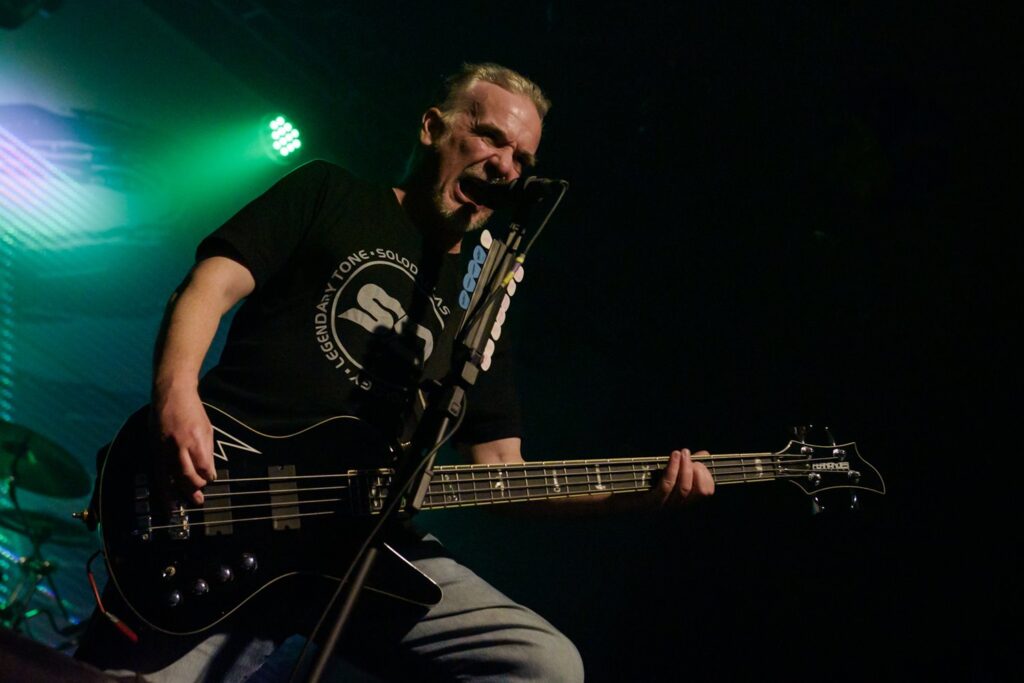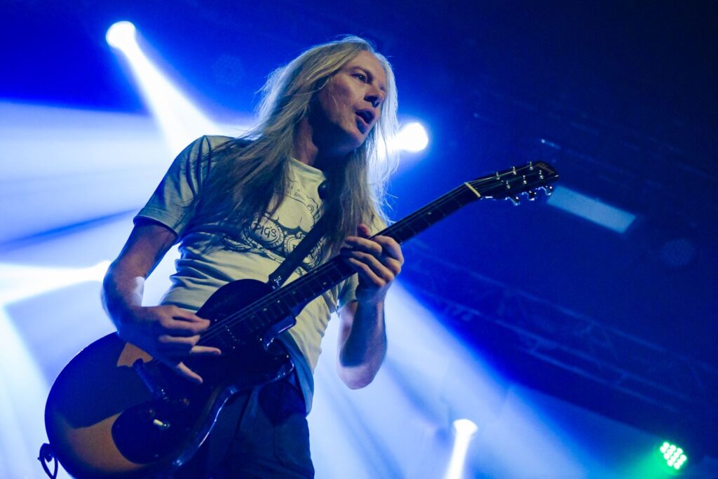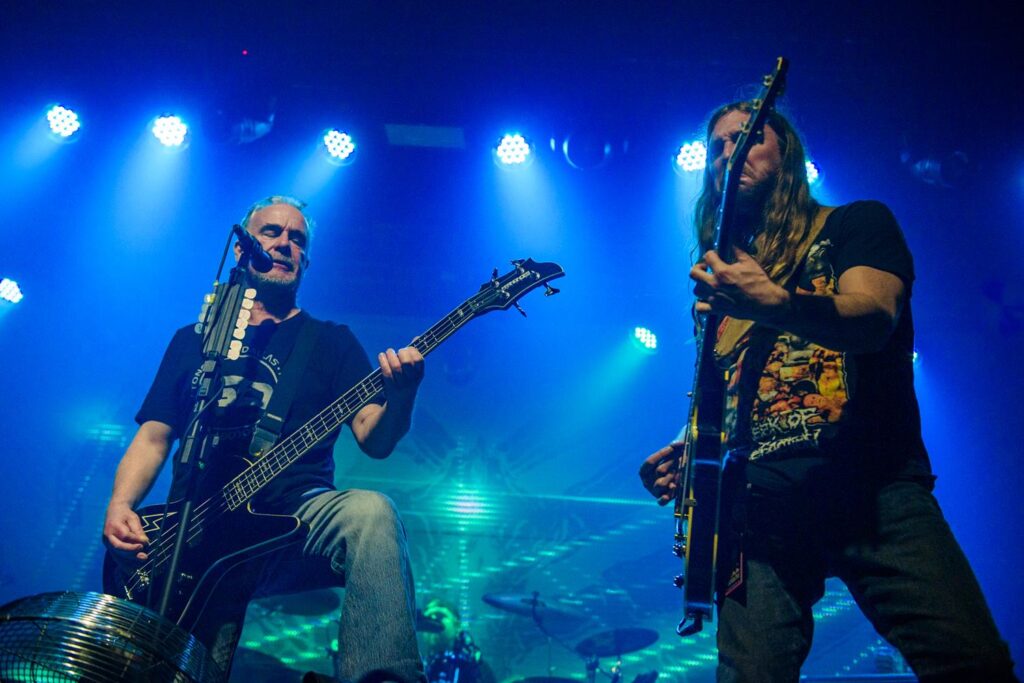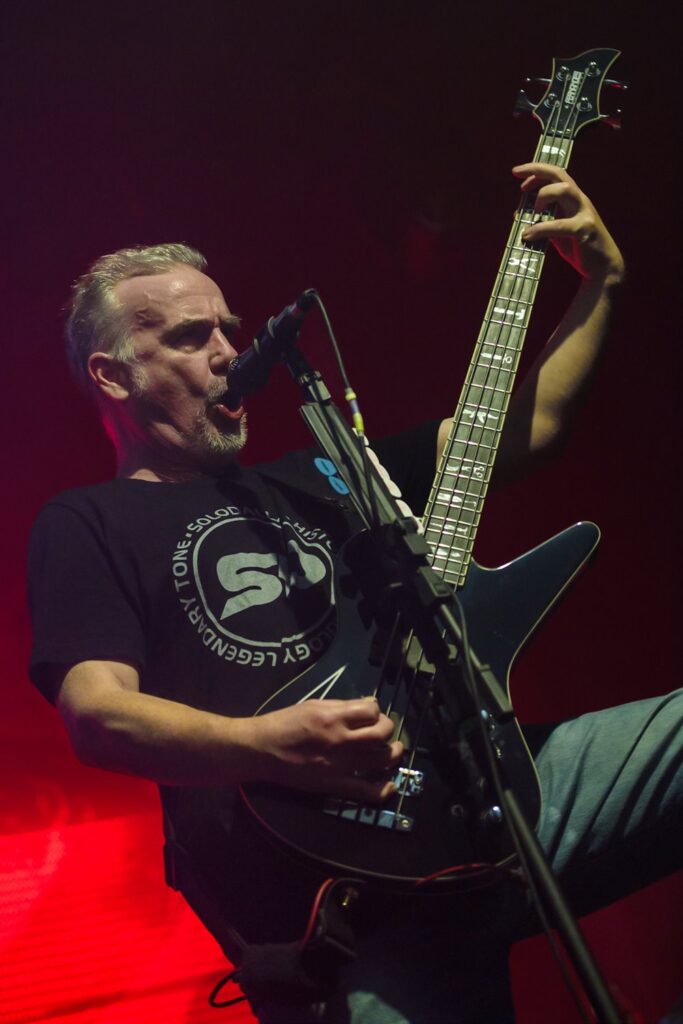 Bill Steer seguiu tocando sua guitarra como se vestido para um baile setentista. Nippy Blackford, guitarrista que entrou para ajudar o grupo ao vivo no pós-pandemia, já estava oficializado no posto no ano passado. Apesar de coadjuvante na maior parte da apresentação no Carioca Club, teve seus momentos de brilhos reproduzindo um solo aqui e acolá.