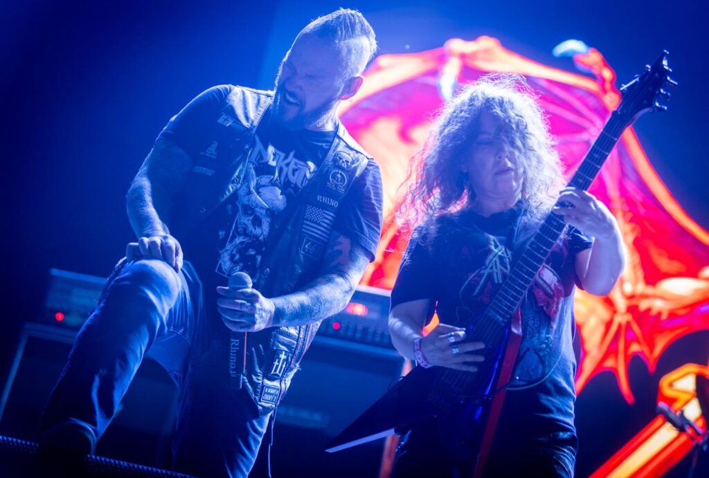 Plateia esta que recebeu a apresentação na base da pancadaria, com rodas abertas desde o início do show com “Time Does Not Heal”, faixa-título do álbum de 1991, até o pandemônio final, uma hora depois, com “Darkness Descends” e “Perish in Flames”. Segundo Rinehart, o clássico álbum de 1986 teve sua gravação finalizada naquele exato dia três de maio, mas trinta e nove anos antes.
