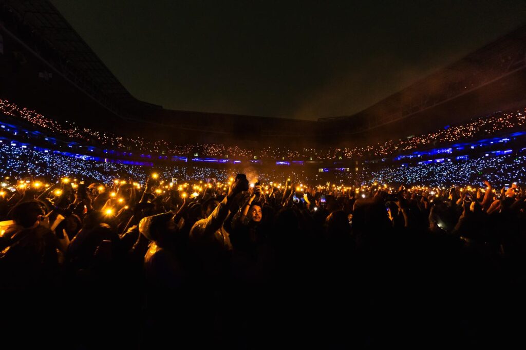 Para quem ficou curioso quanto às lanternas azuis acesas nas cadeiras inferiores, vermelhas nas superiores e amarelas na pista premium (de onde estávamos não tínhamos acesso visual da pista comum), elas aludiam às cores da bandeira da Armênia. Foi algo combinado previamente pela internet, a fim de apoiar a banda na luta pelo reconhecimento do genocídio armênio.
