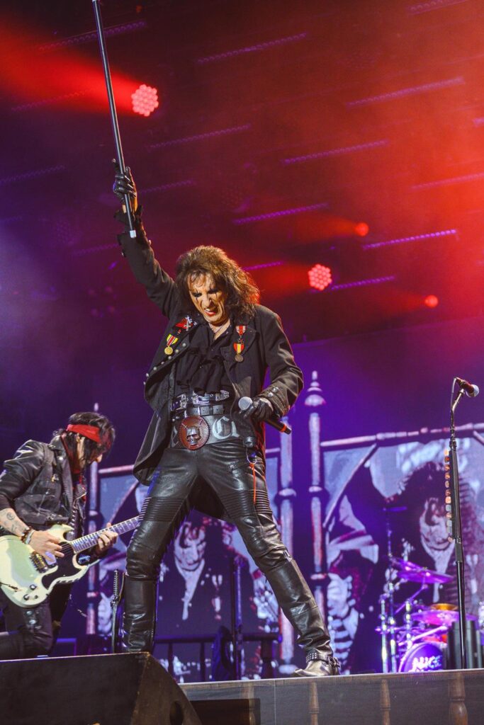 Há tempos, Alice defende que não existe mais shock rock. Não há mais como chocar, pois a realidade cumpre esse papel com maestria. Por isso, é impossível encarar como um “show de horrores” a apresentação atual do cantor, que está com a turnê “Too Close for Comfort” e é acompanhado por Nita Strauss (guitarra), Ryan Roxie (guitarra), Tommy Henriksen (guitarra), Glen Sobel (bateria) e Chuck Garric (baixo). Longe disso. A performance teatral segue muito para o lado divertido; não no sentido de galhofa, mas entretenimento.