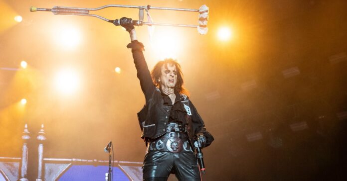 Nos primeiros momentos do espetáculo, surgem duas pessoas com máscara de corvo tocando sinos. Uma cortina em formato de jornal “informa” sobre um julgamento de Alice Cooper, que deve ser condenado por “crimes contra a humanidade” após banimento no, veja só, Brasil. O cantor rasga esse jornal e passa pelo meio para dar início a um trecho de “Lock Me Up”, sucedida pela garage-rocker “Welcome to the Show”, do álbum mais recente, “Road” (2023). Ambas as canções soam quase como um aquecimento, visto que estão longe de serem hits e, sem o elemento visual, ficam até estranhas como as primeiras do set.