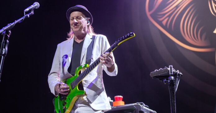 O músico precisou passar recentemente por uma cirurgia para tratar síndrome do túnel do carpo na mão esquerda. A razão? O tempo que ele dedicou a executar parte do catálogo do grupo de rock progressivo.