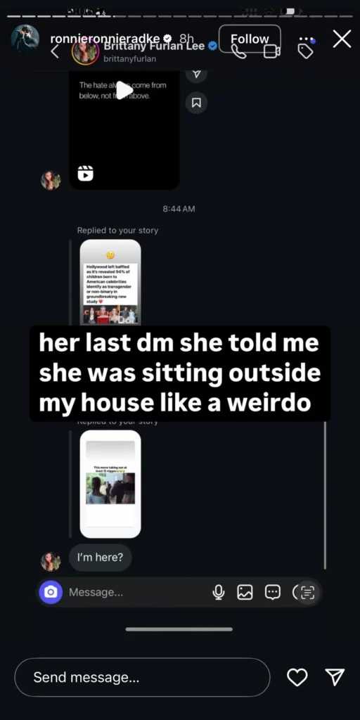 Segundo Ronnie, a atriz e comediante ficou cerca de um mês e meio trocando mensagens com uma conta que fingia ser ele no Snapchat. Numa sequência de Stories no Instagram, o artista contou que Brittany chegou a ir até sua casa ao marcar um encontro, acreditando que falava com o próprio.