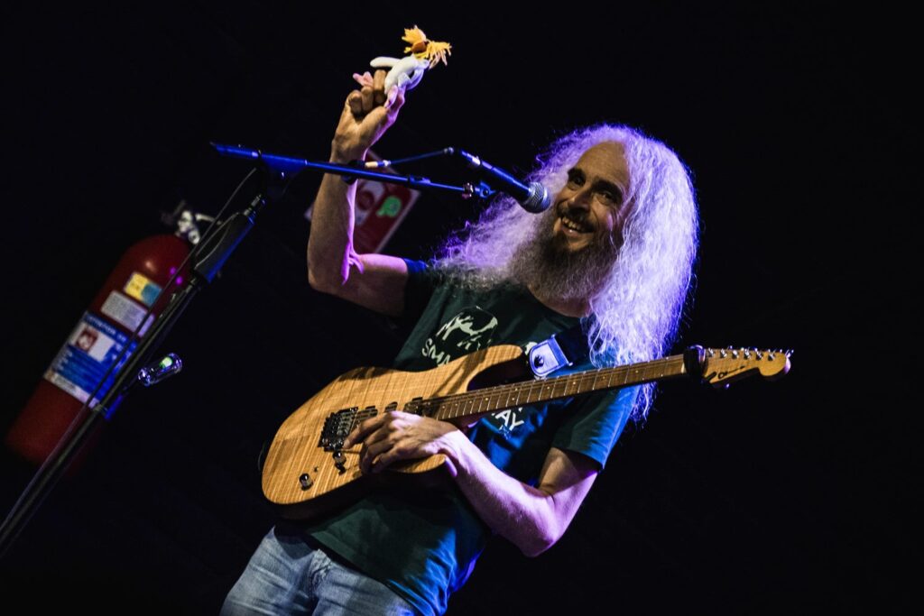 Agora, o que não se alterou do début de 2016 para cá foi o bom humor dos caras, a atmosfera leve criada por eles e compartilhada entre os presentes, interações explicativas sobre a origem de boa parte das músicas e mostras de improviso, andamentos quebrados e destreza técnica. Nada surpreendente quando se leva em conta que: Bryan e Marco integram a banda ao vivo de Joe Satriani, o baterista participou das audições para o posto no Dream Theater à época da saída de Mike Portnoy (na visão de muitos, foi um dos melhores junto do escolhido Mike Mangini) e Guthrie já gravou álbuns com Steven Wilson, Asia e assina o ótimo “Erotic Cakes”, trabalho solo de 2006.