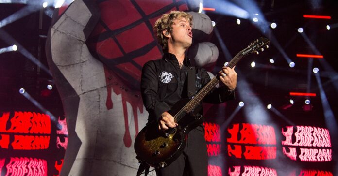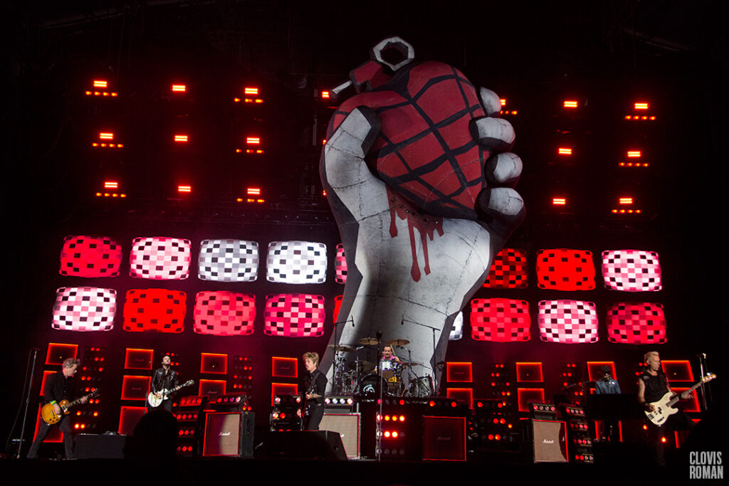 Às 20h50, exatos dez minutos antes do horário marcado para o início do show do Green Day, o sistema de som começou a tocar “Bohemian Rhapsody”, do Queen. Quase o equivalente “Doctor Doctor” (UFO) na apresentação do Iron Maiden, o clássico de Freddie Mercury e companhia foi entoado pelo público de modo comovente. Em seguida, um sujeito fantasiado de coelho animou a plateia ao som de “Blitzkrieg Bop”. Telões exibiram imagens dos músicos ao som de partes de músicas como “We Will Rock You”, também do Queen, e a Marcha Imperial de “Star Wars”. O baixista Mike Dirnt entra primeiro, o baterista Tré Cool depois e o vocalista e guitarrista Billie Joe Armstrong é o último. Todos ovacionados.