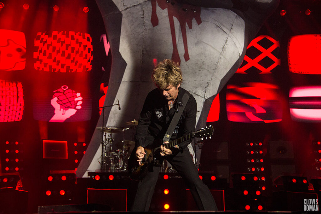 Oficialmente um trio, o Green Day é um sexteto nos palcos: Jason White assume as guitarras de apoio desde 1999, Jason Freese toca teclados desde 2004 e Kevin Preston entrou como terceiro guitarrista em 2019. A crueza dos primórdios deu lugar a uma performance muito bem ensaiada. Apenas Billie Joe se comunica com a plateia — e ele se aprimorou como frontman. No único show da banda em Curitiba até então, em 2017, o vocalista perdia um pouco a mão ao alongar demais as músicas e até se deitar no palco. Hoje, sua identidade está bem definida: ele exibe carisma com poucos exageros e mantém o público nas mãos. Tré Cool executa as viradas que gravou em estúdio com precisão cirúrgica, enquanto Mike Dirnt é discreto, mas animado: sempre faz caretas, joga palhetas e se diverte com o público.