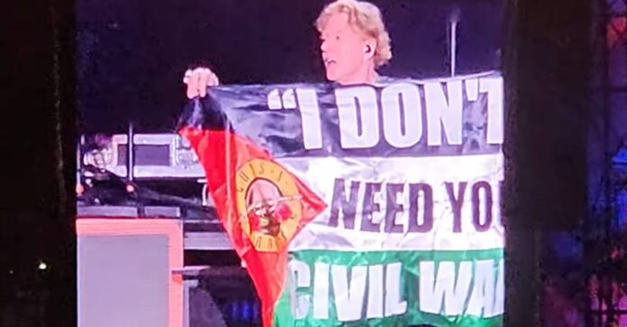 Durante show do Guns N’ Roses em Bogotá, Colômbia, na última terça-feira (7), Axl Rose apareceu portando uma bandeira da Palestina. O vocalista se manifestou em protesto pelos conflitos em Gaza.