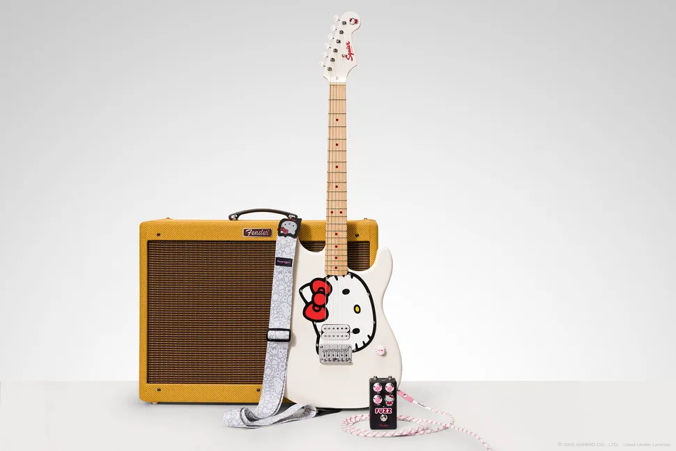 Guitarristas fãs da Hello Kitty já podem comemorar: a Fender relançou a guitarra, por meio de sua marca associada de entrada Squier, com pintura da personagem. E não é só isso: pedal fuzz, correira e cabo novos também trazem o tema do bichinho sem boca da Sanrio.