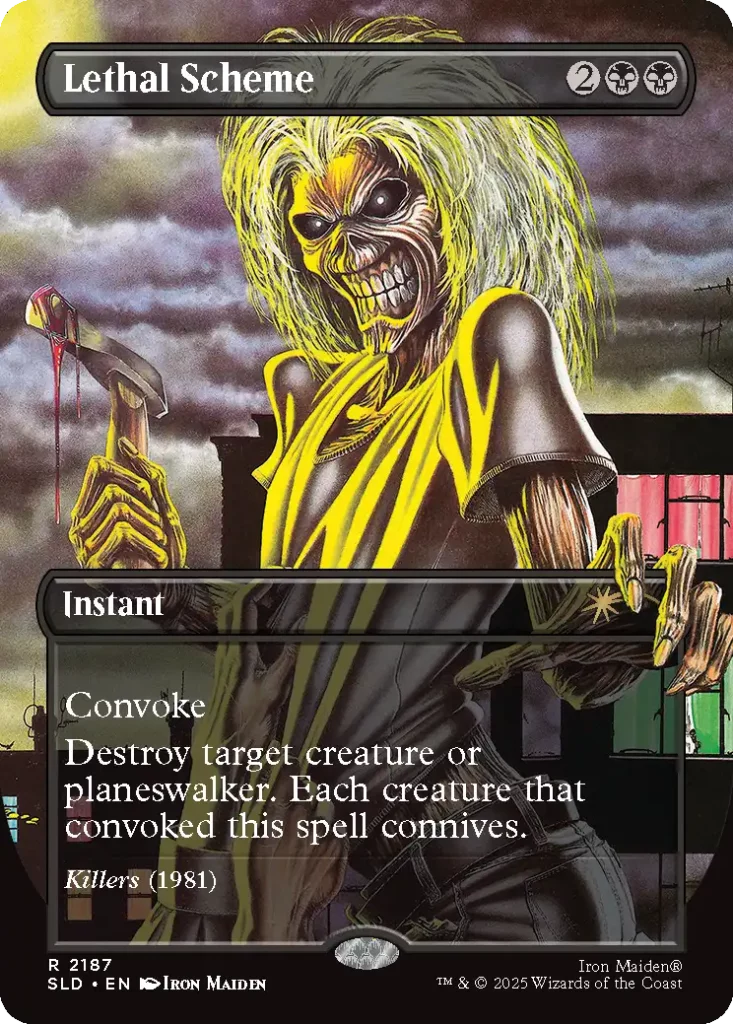 - 1x Lethal Scheme (Esquema Letal) – arte do álbum “Killers” (1981), por Derek Riggs;