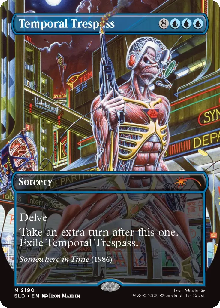 - 1x Temporal Trespass (Transgressão Temporal) – arte do álbum “Somewhere in Time” (1986), por Derek Riggs;