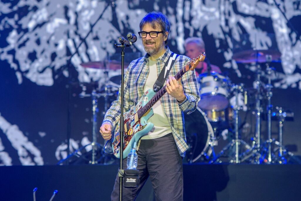 Essa liberdade para soar mais guitarreiro pôde ser sentida com a execução de parte de “Run, Devil, Run”, único momento do set extraído dos EPs “SZNZ” (2022), usada como uma transição entre a cadenciada “Perfect Situation” e a pesada “Hash Pipe”. Ou no duelo entre Cuomo e Brian Bell antes de “Pink Triangle”, uma das quatro músicas do segundo álbum da banda, o então renegado “Pinkerton” (1996), que provocou um hiato do Weezer nos anos seguintes.