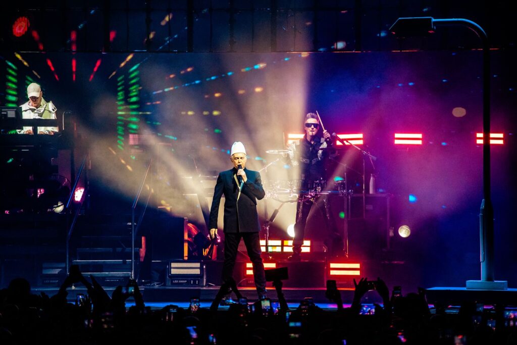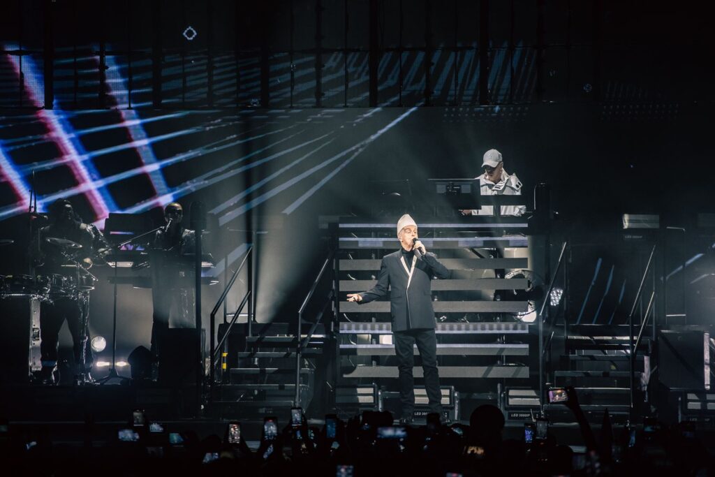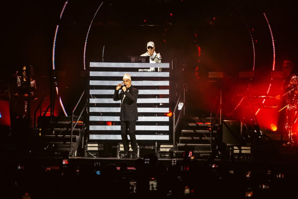 Na reta final, o duo transitou da crítica contemporânea de “Dreamland” para o ritmo pulsante de “Heart”, revisitou conflitos amorosos em “What Have I Done to Deserve This?” — eternizada em colaboração com Dusty Springfield —, reafirmou o discurso político ao reinterpretar “It’s Alright”, do músico americano Sterling Void, e transformou a pista em manifesto em “Vocal”, onde a própria música eletrônica assume papel quase transcendental.