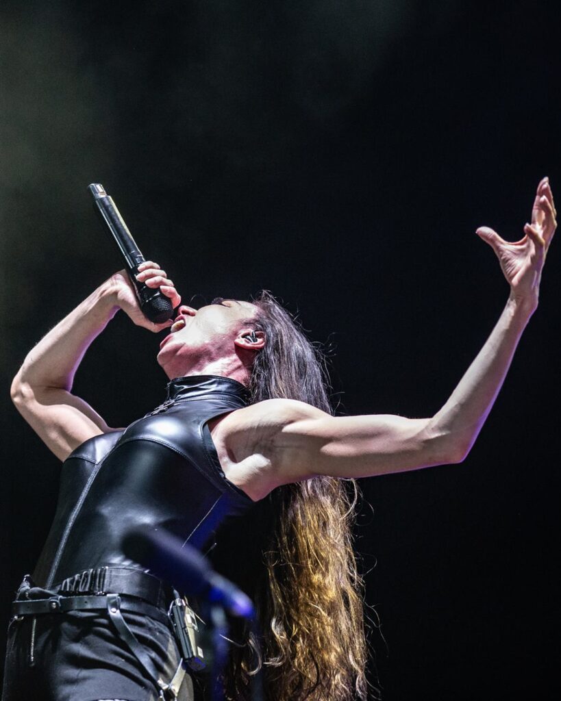 A nova vocalista entrou em cena com disposição, mas também sob escrutínio. Ao vivo, Hart demonstra esforço visível para alcançar a agressividade vocal exigida pelo repertório. Há entrega física — veias saltadas, postura tensa, expressão concentrada — e, em muitos momentos, ela consegue sustentar a intensidade. Ainda assim, fica a impressão de que o desempenho cobra um preço, levantando dúvidas sobre consistência e resistência a longo prazo.