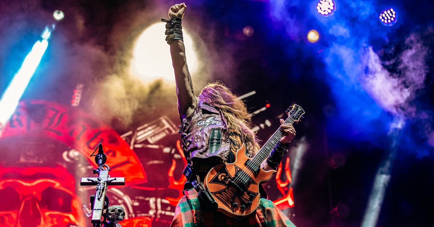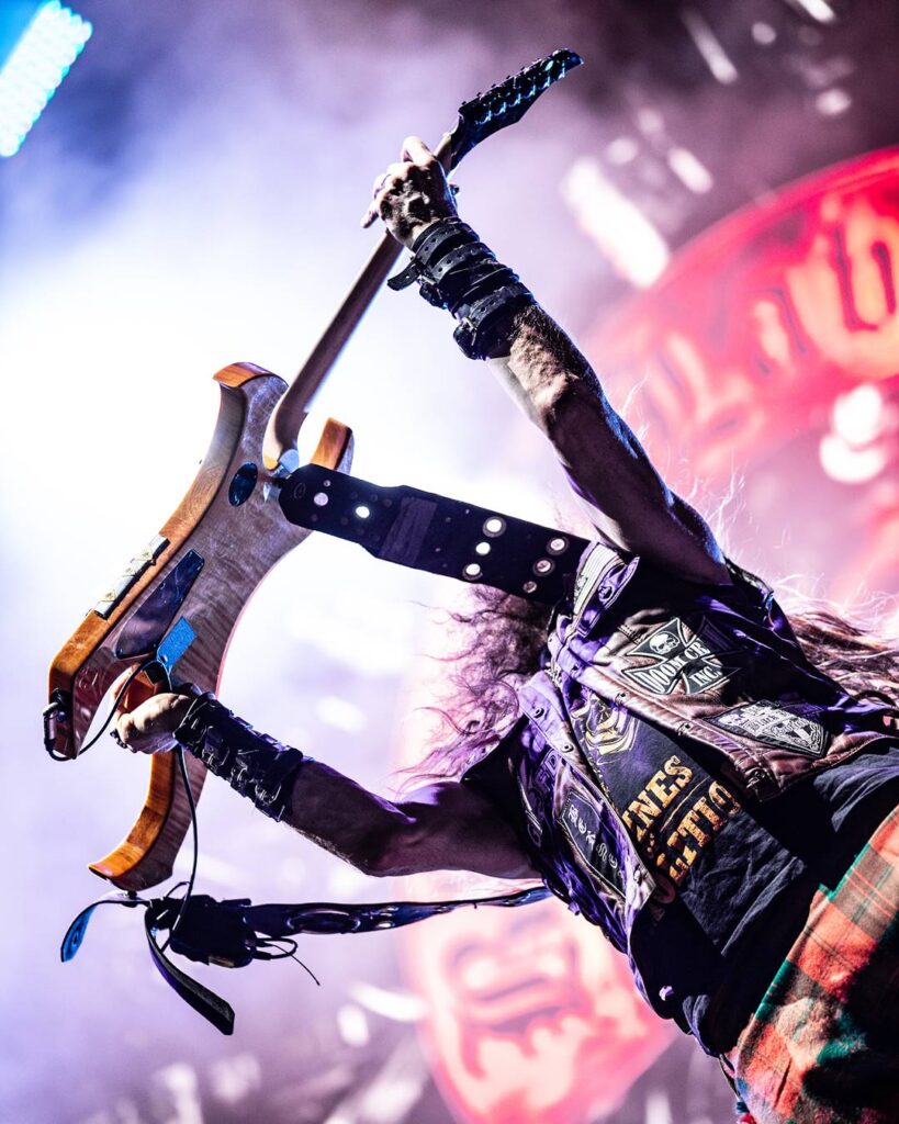 Wylde ainda encontra espaço para seu exibicionismo característico: toca com a guitarra nas costas, em um duelo performático com Lorina que mistura virtuosismo e irreverência — kilt ao vento, quase deixando seu “Pride and Glory” à mostra.
