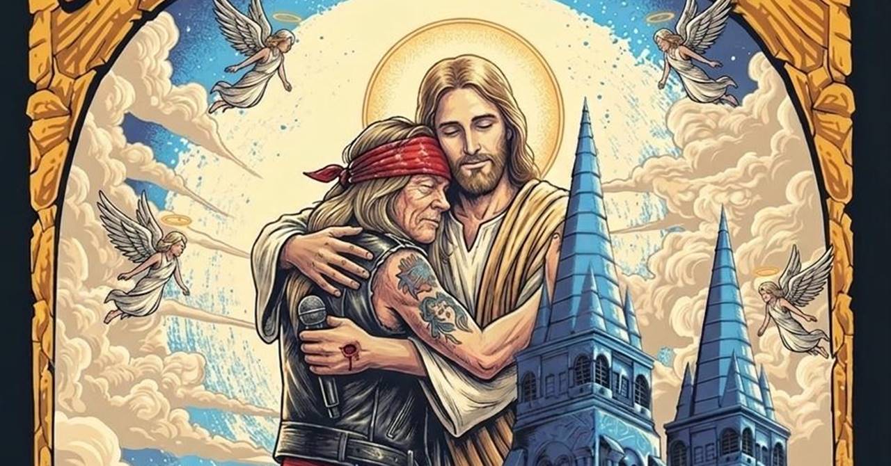 O padre ainda publicou uma foto idealizada por inteligência artifical do vocalista Axl Rose abraçando Jesus e opinou: