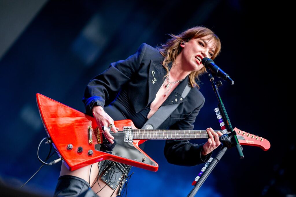 Mesmo com a guitarra em punho na maior parte do tempo — o que poderia limitá-la a um ponto fixo no palco —, Lzzy Hale se movimenta constantemente. Frontwoman experiente, preenche cada espaço com uma energia contagiante e interação direta, reforçando sua conexão com a plateia ao, por exemplo, dedicar “Like a Woman Can” a todas as mulheres presentes.