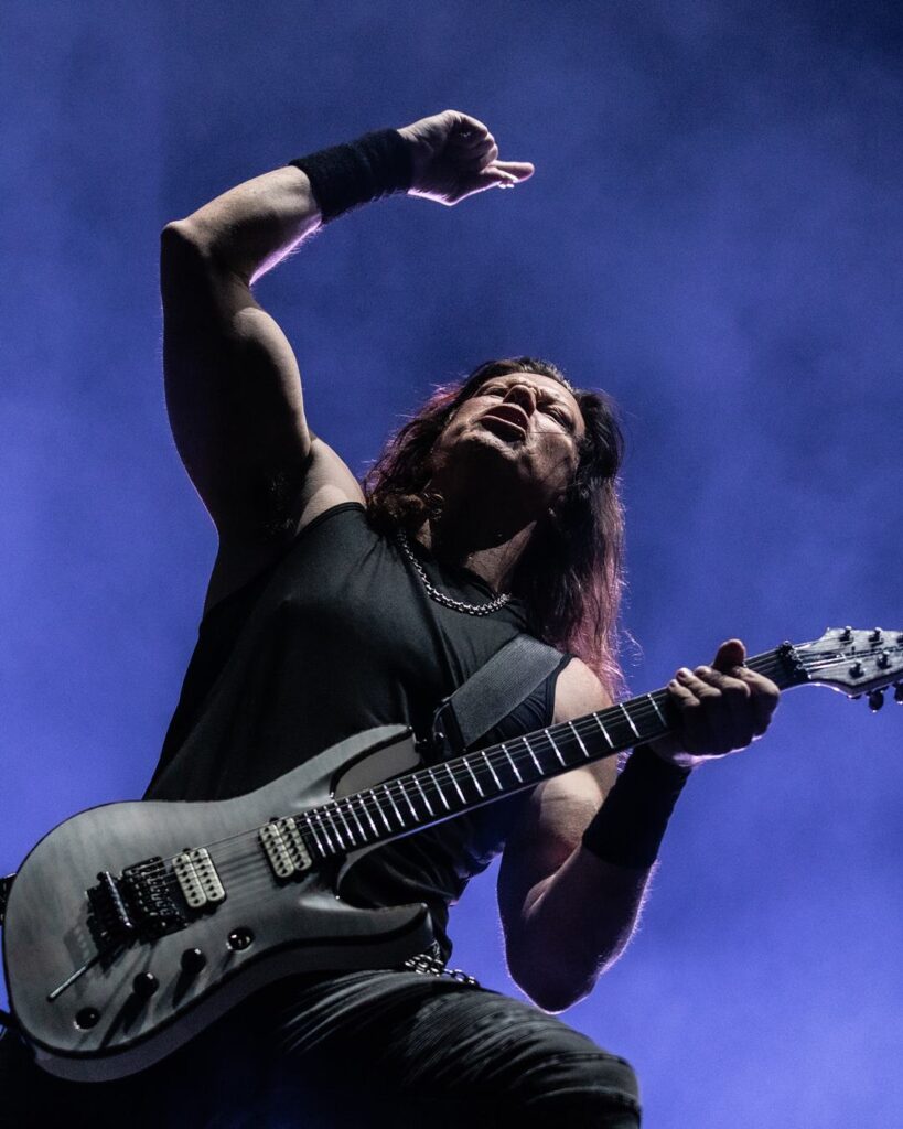 E foi nessa cadência menos veloz que a pista do Ice Stage acompanhou aos pulos o ritmo ditado pelos americanos Liam Wilson, no baixo, e Jon Rice, na bateria. A partir de “Deliver Us”, faixa do disco “Sounds of a Playground Fading” (2011) e terceira da noite, o show entrou num crescendo de uso de efeitos se unindo às guitarras de Björn Gelotte, único sueco remanescente da formação noventista ao lado do vocalista, e de Chris Broderick, de passagens anteriores por Megadeth e Nevermore.