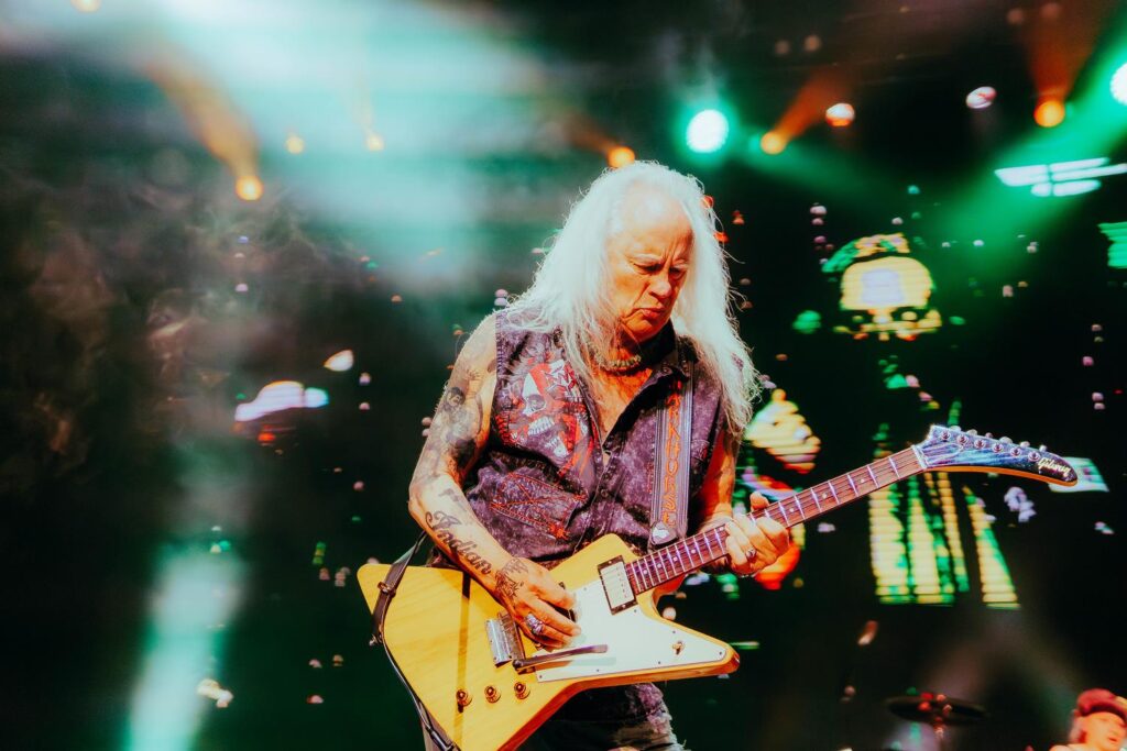 Não que não haja na comitiva que subiu ao palco do Qualistage no último domingo (5) quaisquer vínculos com o passado. Irmão do cantor original Ronnie Van Zant, Johnny é um deles. Outro elo, talvez mais legítimo com o Skynyrd de 50 anos atrás, é Rickey Medlocke. De ascendência indígena e epíteto Sioux, foi baterista nos primórdios da banda e, desde 1996, carrega o estandarte como guitarrista. De presença quase transcendental, apesar da corpulência, é o cacique e o xamã da tribo fundidos em um só.