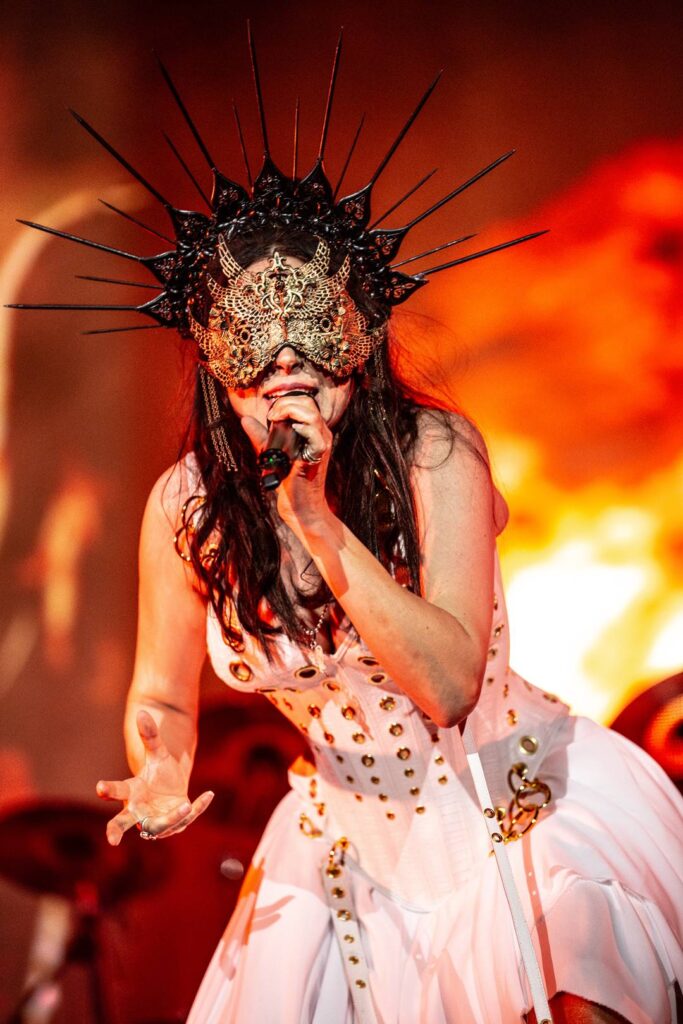 - “The Howling”: ausente há uma década. “Vocês viviam pedindo pela volta dessa, né?”, disse a vocalista Sharon den Adel — meio anjo, meio valquíria em vestes brancas cujas alças insistiam em ceder. Ela parecia ciente da urgência da canção de 2007 diante da nova ascensão global da extrema direita;